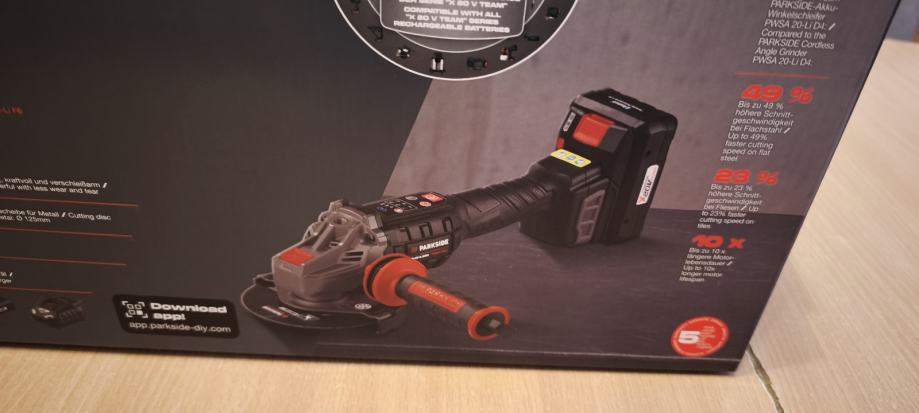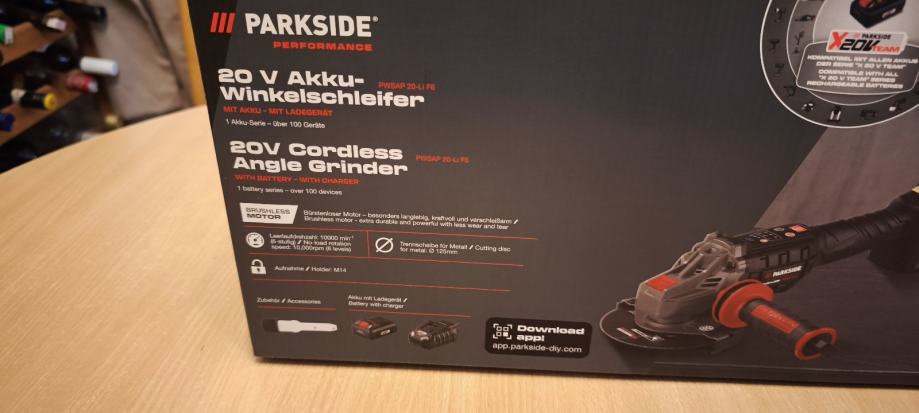 Potpuno nova i nekoristena aku flekserica / brusilica marke PARKSIDE..sa baterijom od 4 Ah..20 V ..i punjačem.