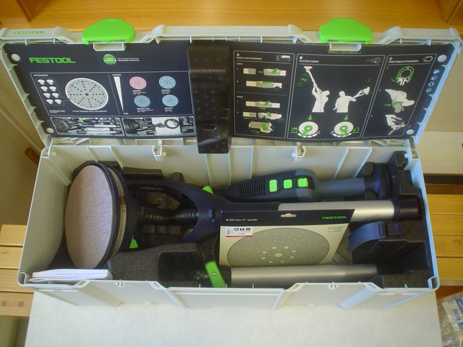 Ekscentrična rotacijska brusilica dugog dosega proizvođača Festool, model LHS 2 225 EQI-Plus Planex, kraće rečeno žirafa.