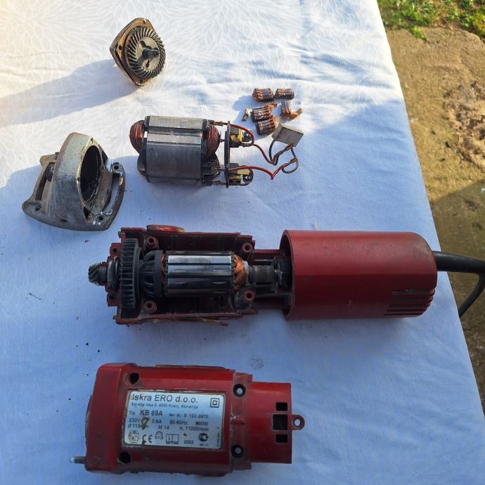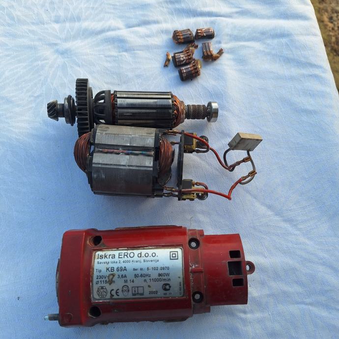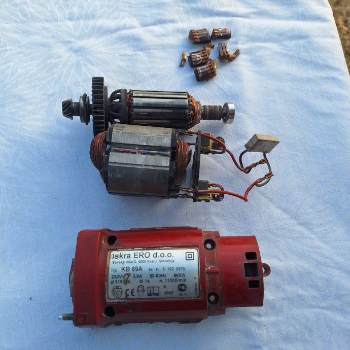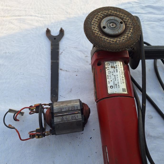 Kutna brusilica Iskra Ero 800 W.KB-69 A.Neispravna za dijelove.Otišal Rotor - Stator ispravan i ostalo.Ako netko ima ispravan rotor od nje neka me obavijesti.