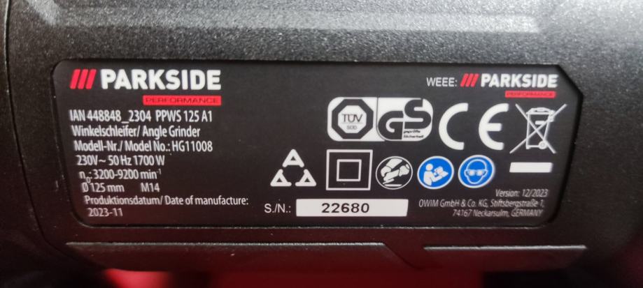 Prodajem električnu kutnu brusilicu Parkside Performance PPWS 125 A1 novu zapakiranu!