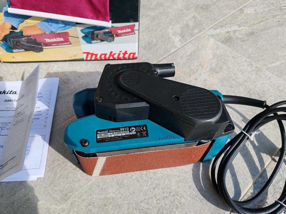Makita 9910 je tračna brusilica namjenjena za brušenje i skidanje površinskog sloja kod drvenih elemenata kao i za razne tesarske poslove.
