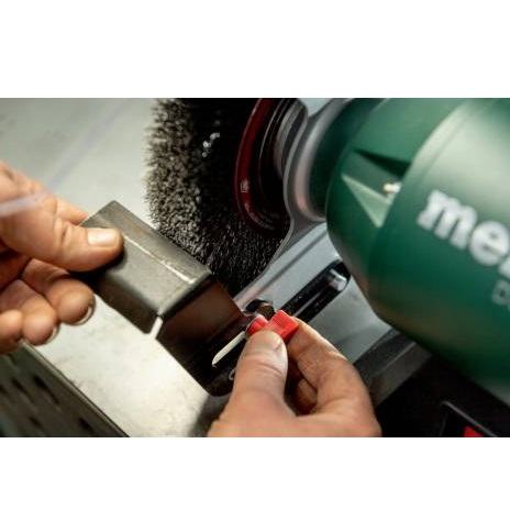 * Univerzalni kombinirani uređaj s brusnom trakom i pločom za brušenje, obradu drva i metala * Za brušenje, oštrenje, skidanje srha i uklanjanje hrđe na čeliku i metalima * Prikladno za korištenje s čeličnim četkama za uklanjanje hrđe * Integrirana LED rasvjeta za optimalno osvjetljenje radnog područja * Velika ruka za brušenje s brusnom trakom koja se može neprestano naginjati za 90° * Podešavanje nagiba ruke brusne trake bez alata * Nastavak za izvlačenje na ruci za brušenje, prikladan za standardne spojne čahure * Gumirani pogonski kotač u ruci za brušenje s utorima za brzo odvođenje topline * Brza zamjena brusne trake bez alata nakon otvaranja poklopca * Maksimalno tihi rad i dug životni vijek ploča zahvaljujući visokokvalitetnim montažnim prirubnicama Proizvođač Metabo Brusne ploča (fi x debljina x unutrašnji otvor) 200 x 25 x 32 mm Broj okretaja u praznom hodu 2.980 obr/min Mrežni napon 220 – 240 V Nazivna ulazna snaga 600 W Izlazna snaga 450 W Okretni moment 2,7 Nm Dužina ruke brusne trake 480 mm Širina brusne trake 50 mm Dužina brusne trake 1000 / 1020 mm Usisni priključak 33 mm Težina 16,9 kg Dužina kabla 1,8 m Opseg isporuke: Metabo BS 200 Plus Brusna ploča od aluminijevog oksida 60 N Brusna traka P 60 Zaštitno staklo Suport obratka Ključ https://www.youtube.com/watch?v=fjVDqIv2IZQ