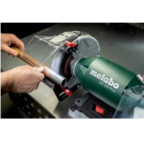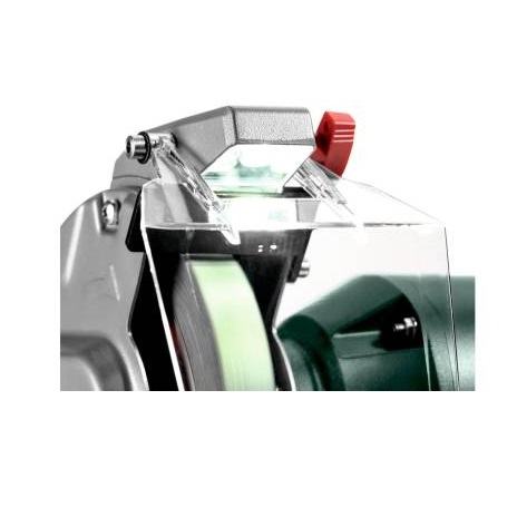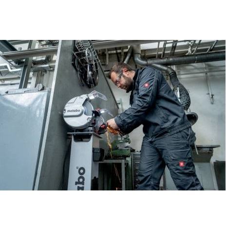 * Prikladno za korištenje s čeličnim četkama za uklanjanje hrđe * Integrirana LED rasvjeta za optimalno osvjetljenje radnog područja * Veliki nagibni nosač obratka s praktičnim V-utorom za oštrenje igala za zavarivanje * Nizak nivo buke i niske vibracije, indukcijski motor bez održavanja * Maksimalno tihi rad i dug životni vijek ploča zahvaljujući visokokvalitetnim montažnim prirubnicama * Držač radnog komada podesiv bez alata * Najviša razina sigurnosti na radu zahvaljujući iznimno velikim i stabilnim štitnicima za zaštitu od iskrenja Proizvođač Metabo Brusne ploče (fi x debljina x unutrašnji otvor) 200 x 25 x 32 mm Broj okretaja u praznom hodu 2.980 okr/min Napon mreže 220 – 240 V Nazivna ulazna snaga 600 W Izlazna snaga 450 W Okretni moment 2,7 Nm Težina 17,5 kg Dužina kabla 1,8 m