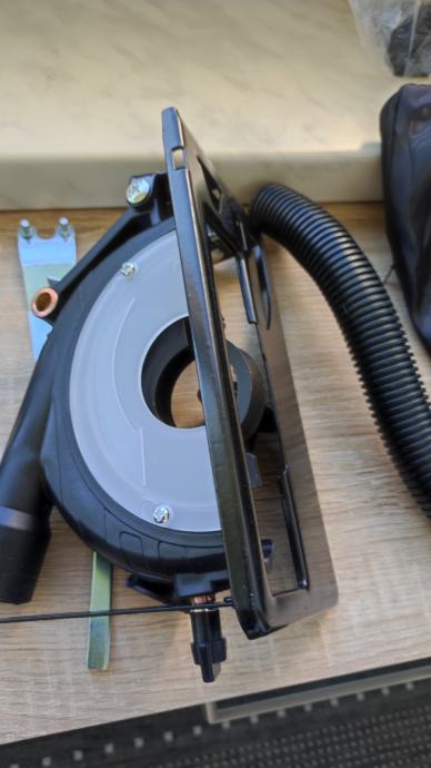 Nastavak pretvara jednoručnu brusilicu (fleksu) ili bušilicu u ručni cirkular sa vodilicom, rezanje pod kutem, priključak za usisivač. Poklanjam i dvosmjerni list vidija pile.