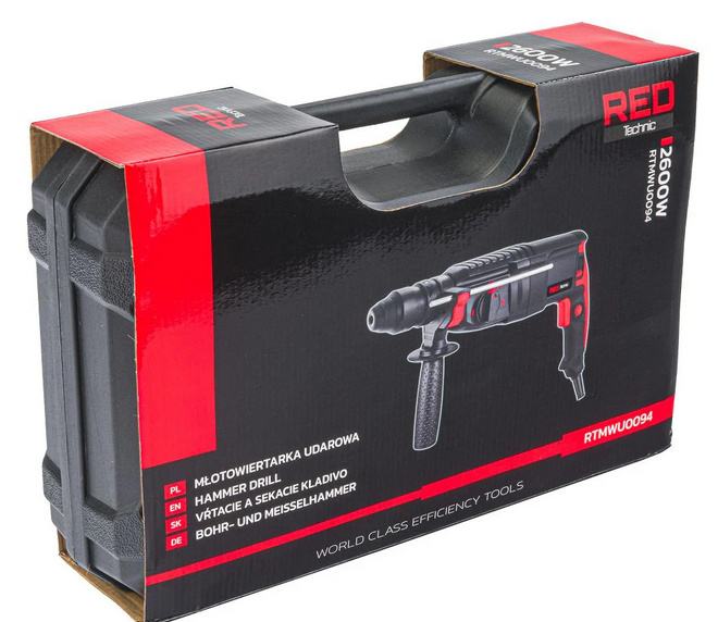 RED TECHNIC RTMWU0094 je moćna i svestrana električna bušilica s udarnom funkcijom, namijenjena za bušenje, štemanje i obradu tvrdih materijala poput betona, cigle, kamena i metala. Zahvaljujući snazi od 2600 W i energiji udarca od 4 J, idealna je za zahtjevne građevinske i renovacijske radove. U pakiranju dolazi s dodatnim priborom i transportnim koferom.