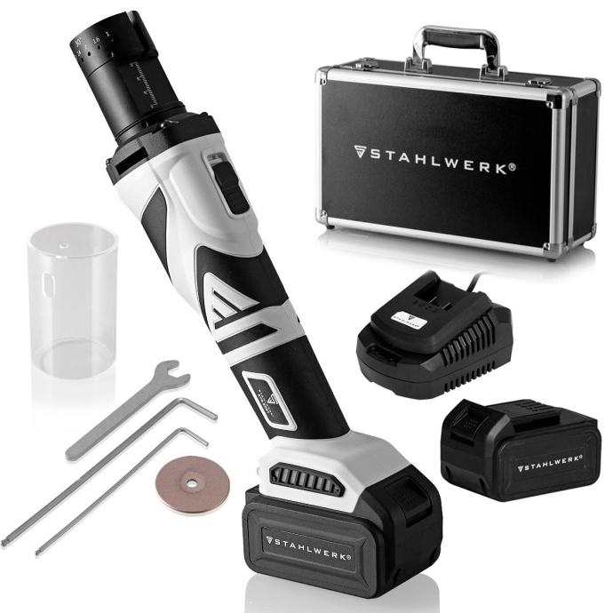 Volframova brusilica STAHLWERK ATG-20 ST praktična je za volframove elektrode na baterije koja daje precizne rezultate brušenja u vrlo kratkom vremenu. Zahvaljujući tehnologiji bez četkica bez habanja, akumulatorska volframova brusilica radi tiho i precizno. Integrirani dijamantni brusni kotač osigurava precizno brušenje vrha elektrode i bolje rezultate zavarivanja. Snažan motor u kombinaciji s uređajem za brzo otpuštanje za držanje elektroda osigurava precizan, udoban i brz rad.