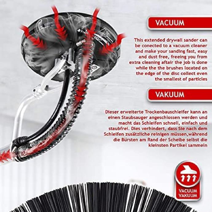 Timbertech TBSLF02 u crvenoj boji istovjetno slikama uključuje sljedeću opremu: Teleskopski stalak. Uređaj omogućuje glađenje, poliranje i brušenje. Stroj ima snagu od 710 W. Uređaj se napaja izmjeničnom strujom. Radni napon je 230 V. Promjer diska je 225 mm. Uređaj postiže brzinu praznog hoda do 2.100 o / min.
