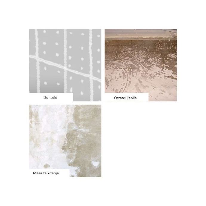 Priključak usisavanja je 45 mm (unutarnji) i 50 mm (vanjski). Brusni papir se mijenja preko čičak zatvarača. U specifikaciji je navedeno 12 okruglih brusnih diskova, granulacije 80 / 120 / 180.