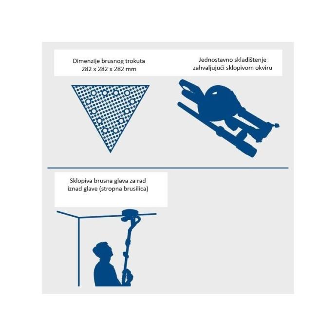Brusilica za zidove i strop DS930, 710 W je električni alat za brušenje većih površina na zidovima i stropovima, s teleskopskim dosegom za rad iznad glave.
