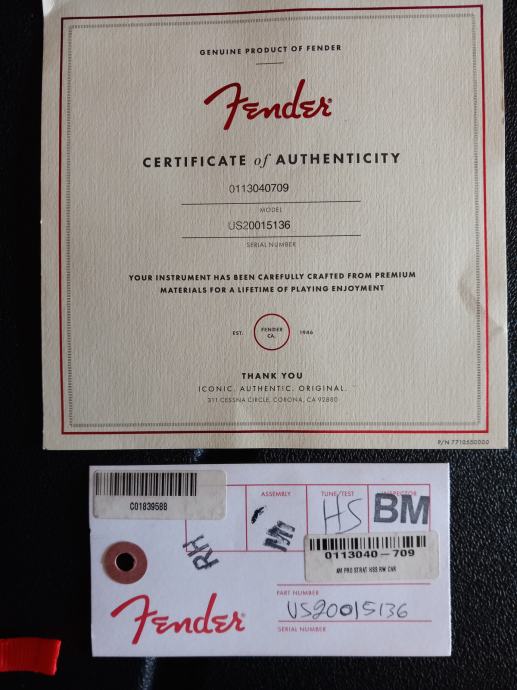 Specifikacija po serijskom broju preuzeta sa Fenderovih stranica :