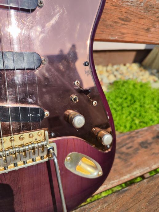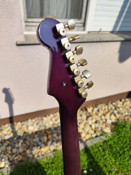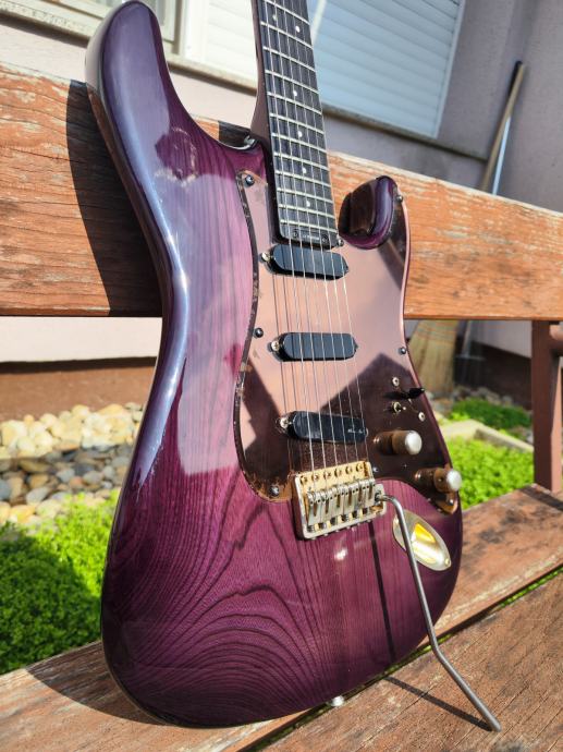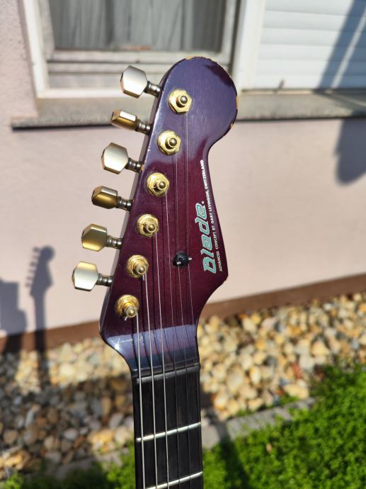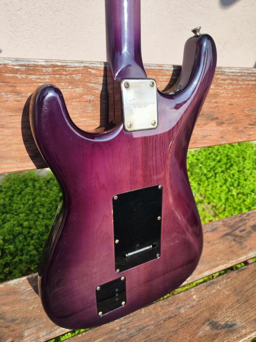 Rana serija Blade R4 gitare s kraja 1980-tih, fenderov oblik glave, misty violet boja, 3 hum-cancelling single-coil pickupa. Tijelo sen ash, ebanovina fretboard, rock maple neck, Sperzel locking tuneri, fantastični Falcon tremolo. Variable Sound Control Preamp System sa 3-way toggle prekidačem. Gitara u originalnom stanju.