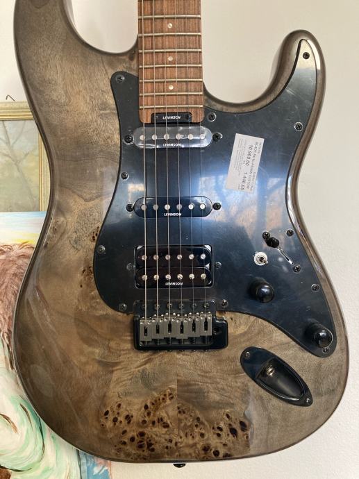 Nova nekorištena gitara Blade RH1 Custom Nightwood. Tijelo Alder joha top Figured Wood, vrat Hard rock maple javor griff Pao Ferro. Pikapi Levinson VS-1 singli i LH-55 humbucker. I VSC aktivni booster. FT-4 tremolo i locking tuneri.