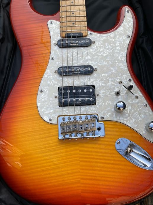Nova električna gitara sa računom i garancijom 2 godine. Tijelo joha top rebrasti javor vrat javor Levinson HSS sa push/push splitanjem humbuckera i treble i midle aktive boost sa potovima za podesavanje