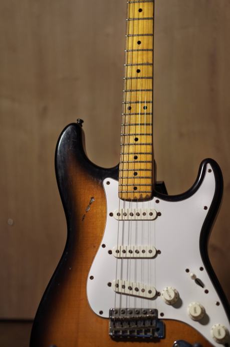 Ovaj instrument nije šminkerski, sa sjajnim lakom, i bez ogrebotina, nego na sebi ima autentične znakove korištenja, sa vrlo tankim nitrom gore...puna je ogrebotina, malih pukotina na laku baš kao stare gitare sa takvim lakom. Vrlo je lagana, jako transparetna gitara. U priloženom videu pogledajte kako zvuči za jedne live svirke. Mnogi koji su znalci su rekli da je ovo gitara koja doslovno ide uz bok Custom Shop Fendera.