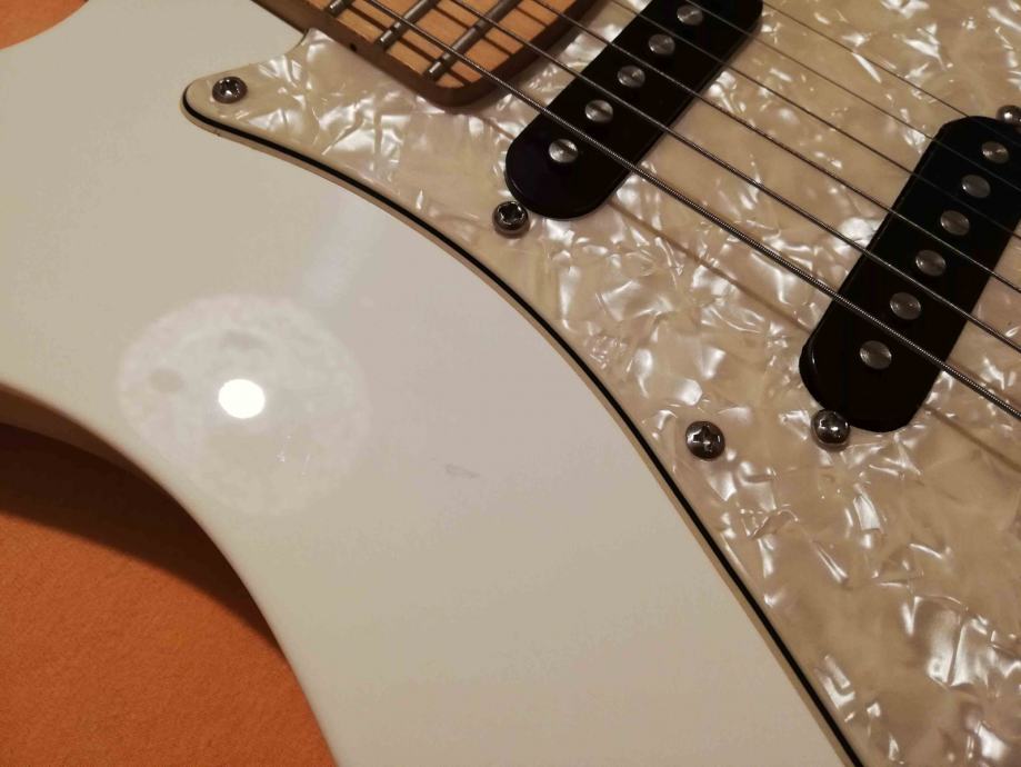 Manja ogrebotina s gornje strane, na liniji između middle i neck pickupa.