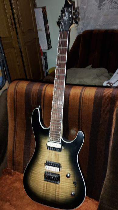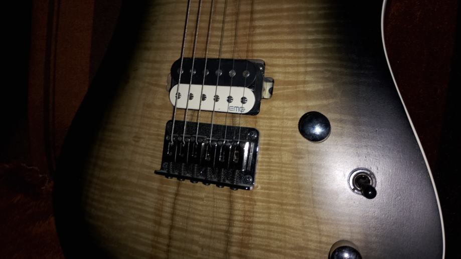 Spalted Maple top na tijelu od mahagonija, EMG® RetroActive Super77 dvostrukim humbuckerima s klasičnim open-coil zebra izgledom.