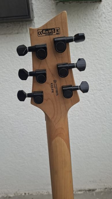 The Cort KX5 FR is a bolt-on electric guitar with a basswood body, Canadian hard maple neck, and rosewood fretboard. It features a Double Locking III Tremolo bridge, two Motherbucker MB-2 humbucking pickups, and a 3-way toggle switch with 1 volume and 1 tone (push/pull) control for versatile sound. It has 24 large frets and a 25.5" scale length.