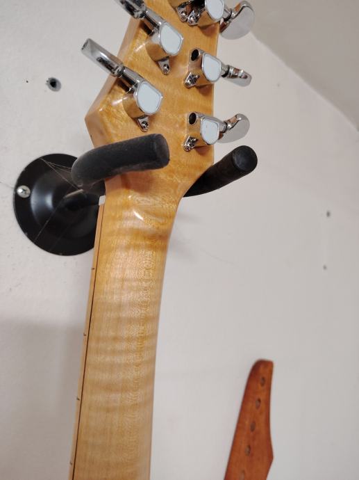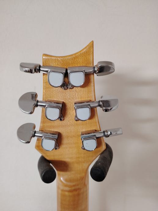prodajem custom prs, ručni rad. Tijelo izrađeno od lipe sa 15 mm debelim topom od rebrastog javora. Vrat I fingerboard također od rebrastog javora, sve finiširano šelakom u natur varijanti. Midium pragovi, dvostrana šipka. Dva sd hambakera, sh2 na necku I sh4 na briđu, oba se splitaju na tone potu. Nove de jung mašinice, nut od kosti. Važna napomena, vrat je deblji, v-profila, tako da nije za ljubitelje tankih vratova. Fiksni briđ sa custom sedlima od mesinga. Gitara stara tek nekoliko mjeseci, neoštećena , krasnog zvuka, niskog štima, setup na 9,5-44 žice. Više informacija na mail ili mob.(može whatsapp)