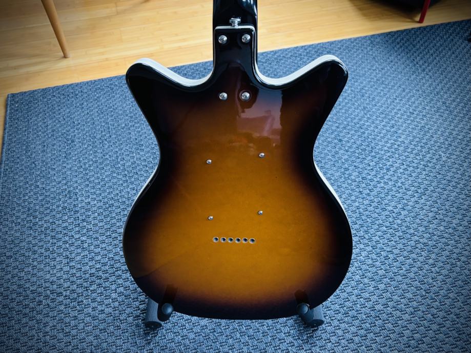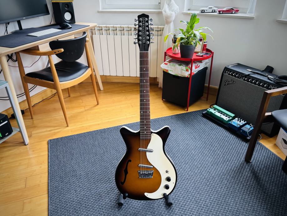 Prodajem jedinstvenu Danelectro DC59 12-String hollow body gitaru u predivnom Tobacco Sunburst finišu. Sjajna gitara koja ima vintage vibe 60-ih i prepoznatljiv jangly zvuk prepoznatljiv kod Byrdsa i Beatlesa. DC59 je moderna reinterpretacija legendarnog Danelectrovog modela iz 1959.