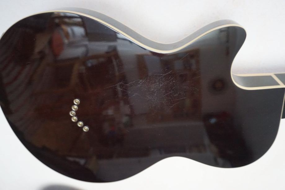 Slijedeći tradicionalne principe tona i rezonancije, mahagonij i javor su izbor drva za 49er. Jednodijelni vrat i tijelo izrađeni su od vrhunskog mahagonija, dok je čvrsti gornji dio izrađen od prirodno zrnatog javora, koji savršeno naglašava našu prekrasnu Honey završnicu.