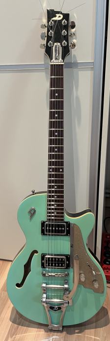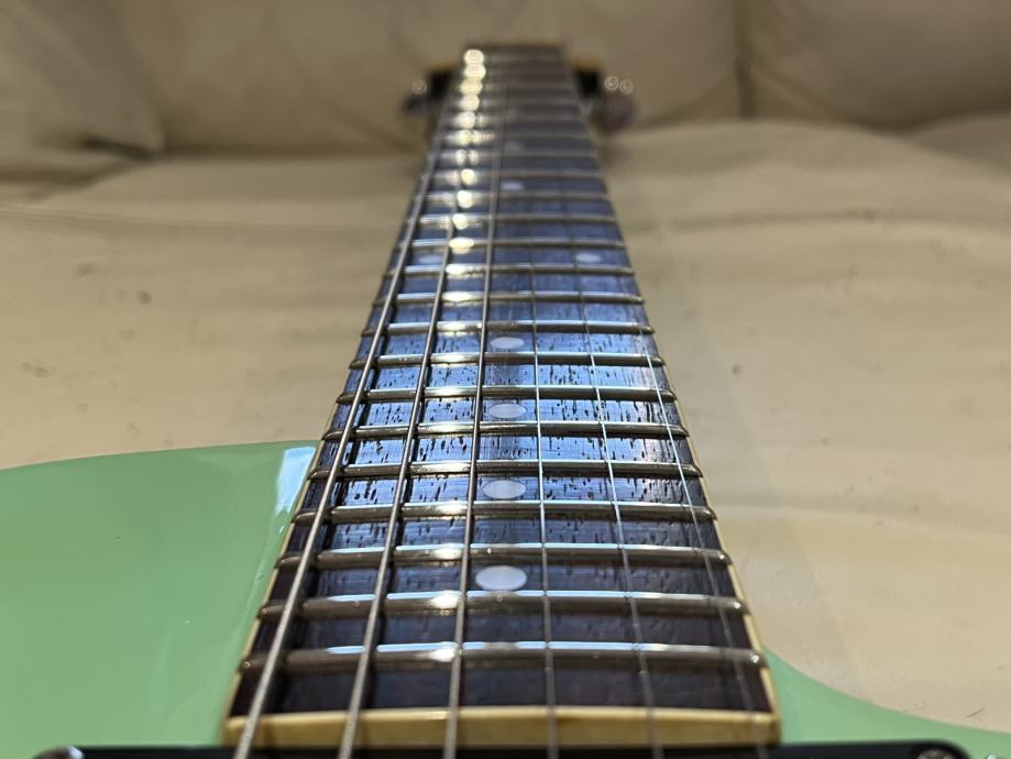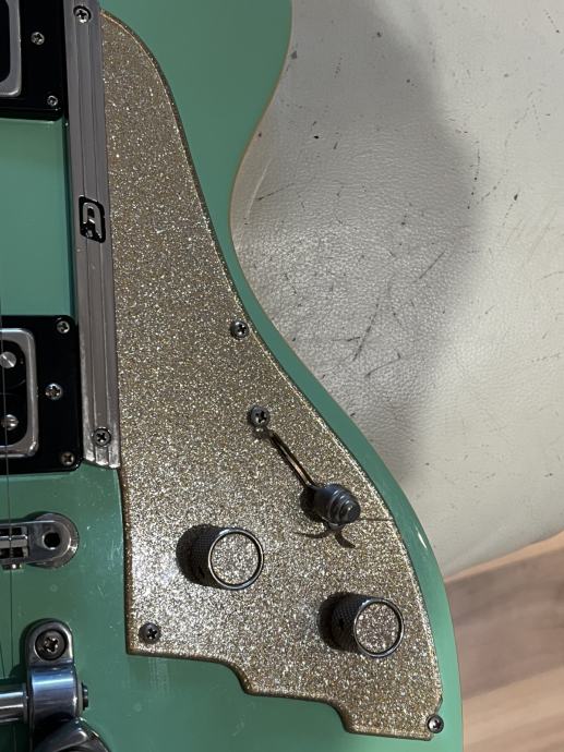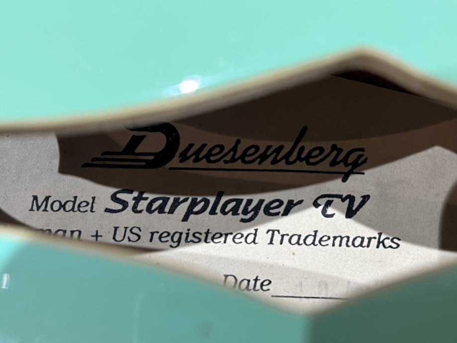 Prodajem gitaru Duesenberg Starplayer TV Seafoam green boja iz 2000 godine.Kod mene je nekih 6 godina i vrlo malo je svirana vani.Uz par malih oštećenja vidljivih na slikama gitara je kao nova s obzirom na godine.Osobno sam je modificirao ugradnjom push-pool potenciometro radi splitanja humbuckera.Nemam kofer za nju jer sam je tako i dobio.Ne bih zamjene,sva pitanja su dobro došla.