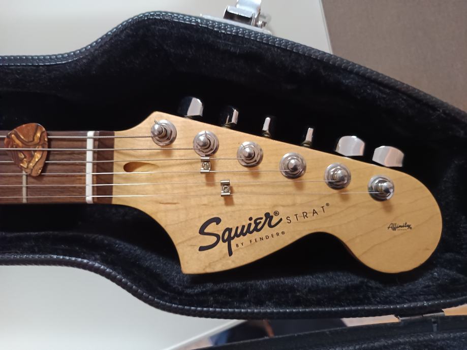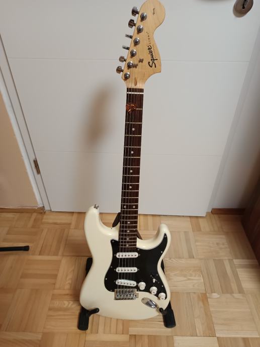 Prodajem el. gitaru Fender Squire, bijeli sa koferom i stalkom, očuvana, ispravna, prodajem za 400 eura