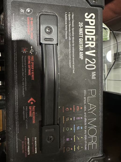 Line 6 Spider V 20 MkII je 20W modeling pojačalo s velikim brojem ugrađenih efekata i zvukova. Savršeno za vježbanje kod kuće ili u stanu. Ima USB priključak za povezivanje s računalom.