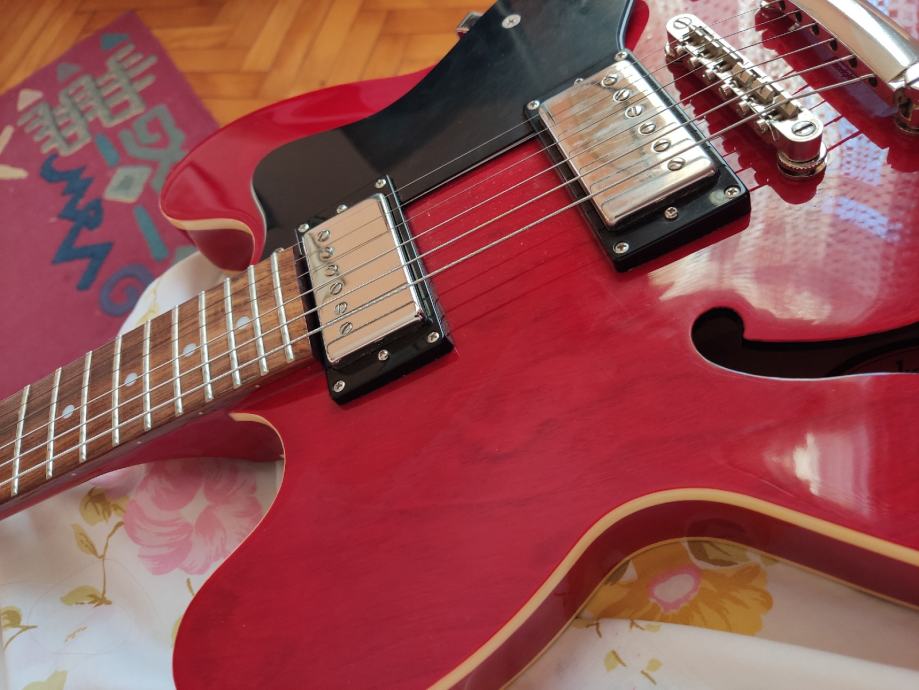 Mint gitara iz naslova, setupirana, mekana, bez crtice, niska akcija, prodajem jer imam drugu ES-335, dajem i soft case i remen od prave kože, video na kraju slika, čisto radi orijentacije, preferiram osobno preuzimanje, ev. busom nakon uplate, može se isprobati kod mene, mislim da tada neće trebati uvjeravanja kako gitara zvuči i "svira" daleko iznad svog cjenovnog razreda.