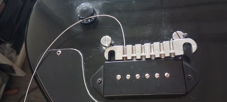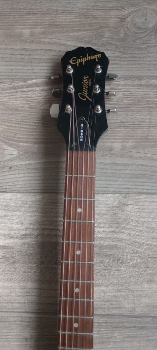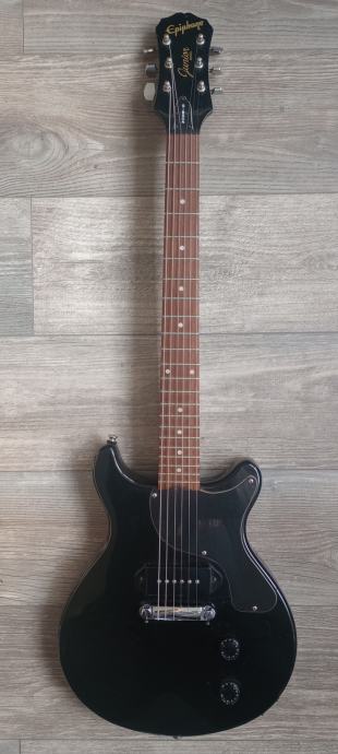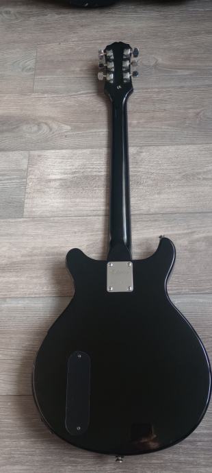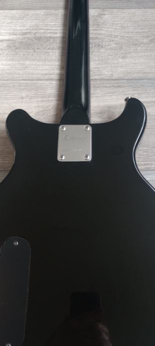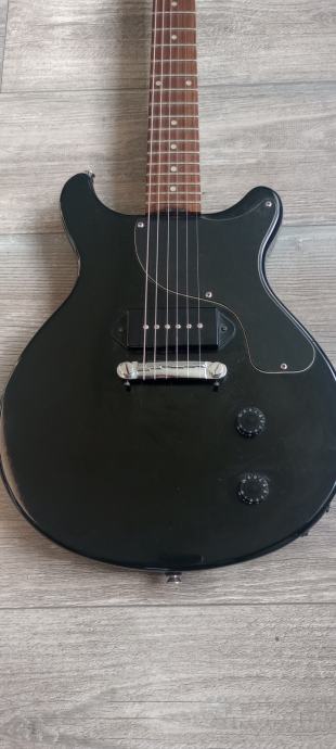 Prodaje se rijedak model Epiphone double cut junior iz 1997 godine. Made in Korea. Gitara je solidno uščuvana za svojih 30 godina. Na gitari je sve originalno do zadnjeg šerafića. Sve je apsolutno funkcionalno, i gitara zvuči izvrsno. Tijelo mahagonij, vrat javor iz jednog dijela, rosewood fretboard. Wrap around bridge i P90 dog ear pickup. Blues, rock, punk mašina.