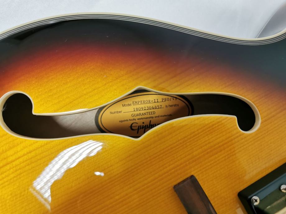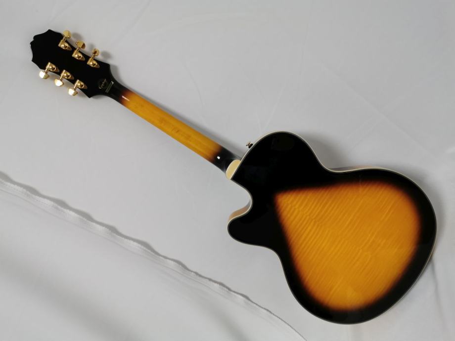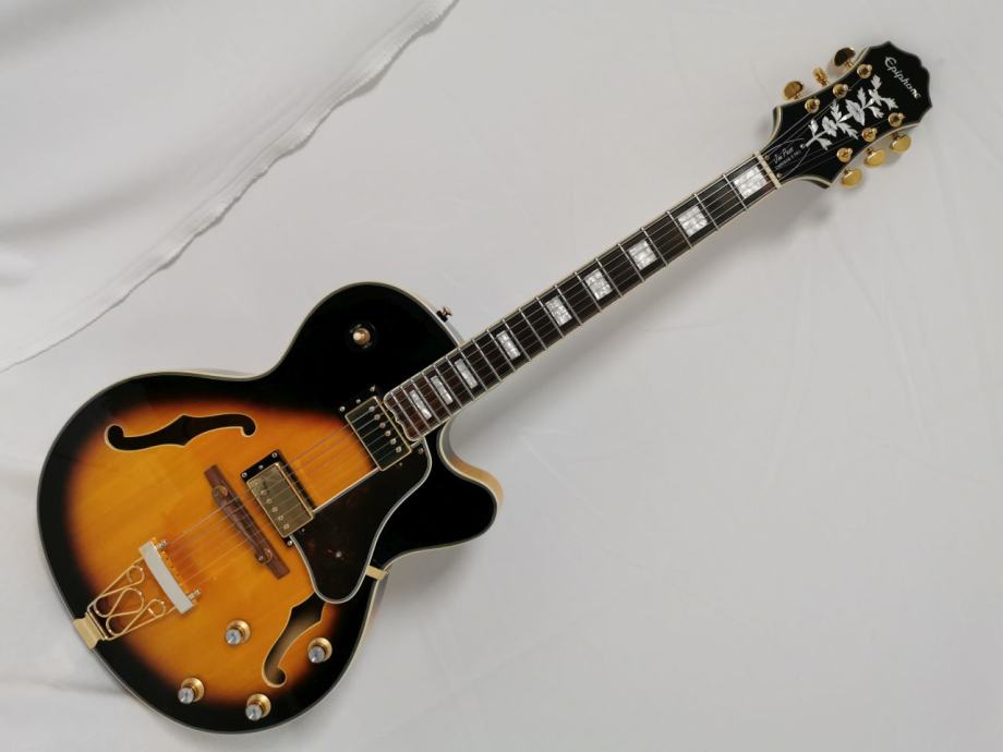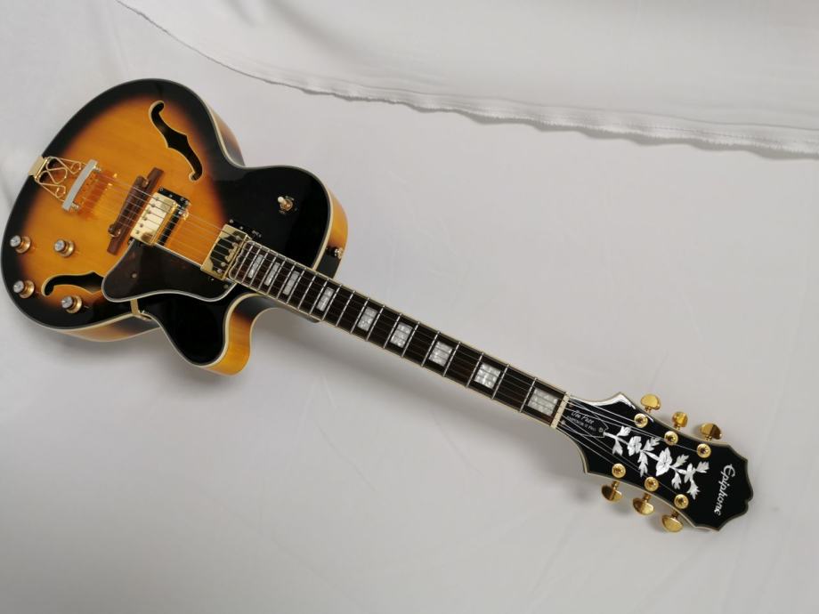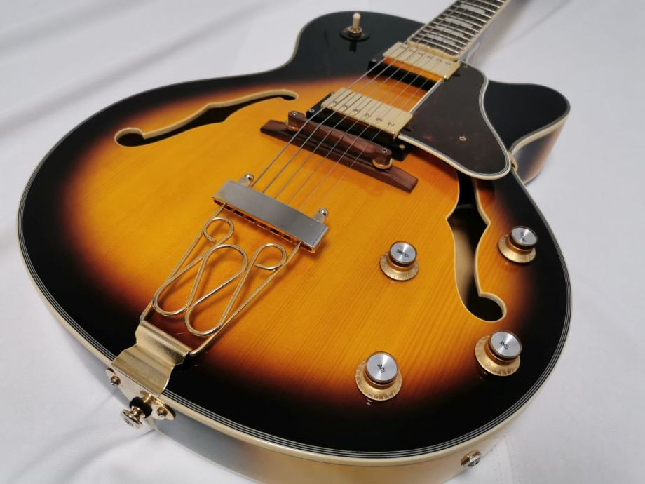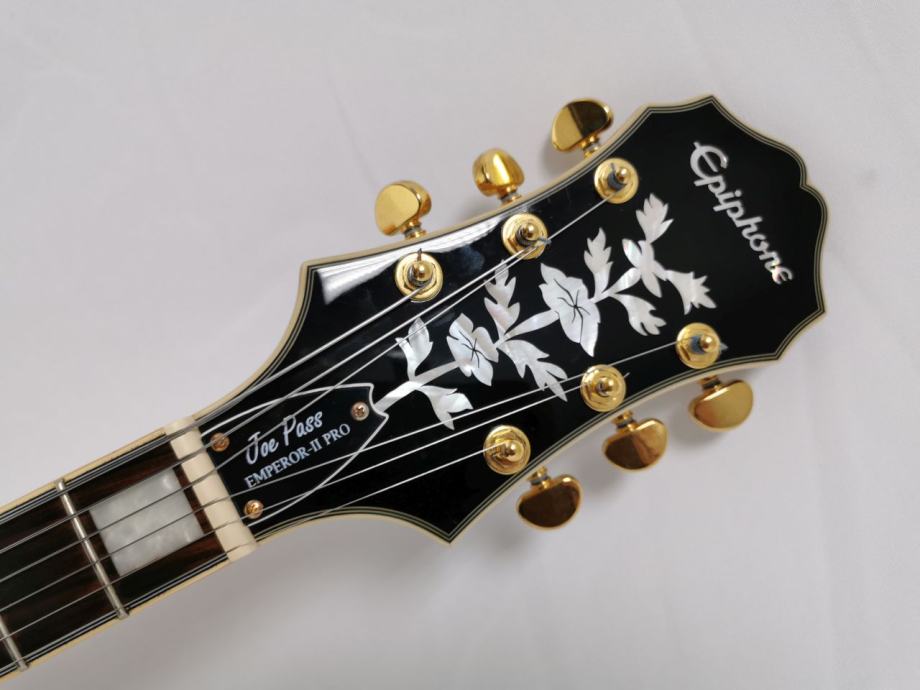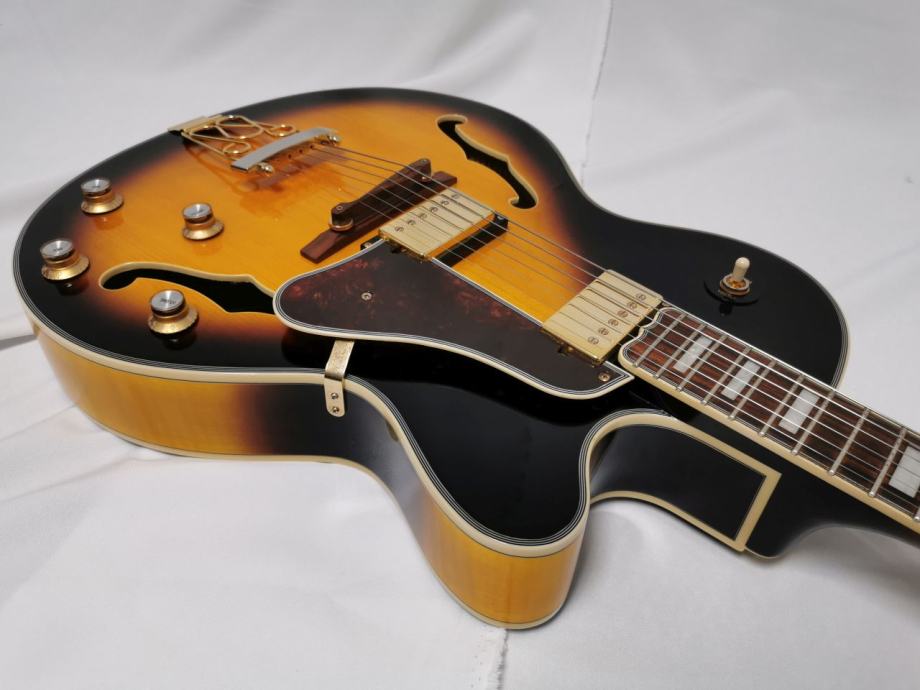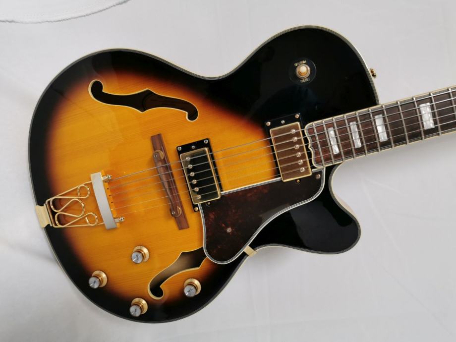izvrsno očuvana semi-hollow jazz gitara; Joe Pass signature model; Body shape: 16" jazz guitar; Top made of selected spruce; Three-piece maple neck; Fretboard: Pau Ferro; Elaborate bindings around the body; Pickup: 2 ProBucker Humbuckers with coil-splitting; Gold-plated hardware; Colour: Vintage sunburst. Gitara je doslovno kao nova, s pismenim jamstvom od godinu dana.