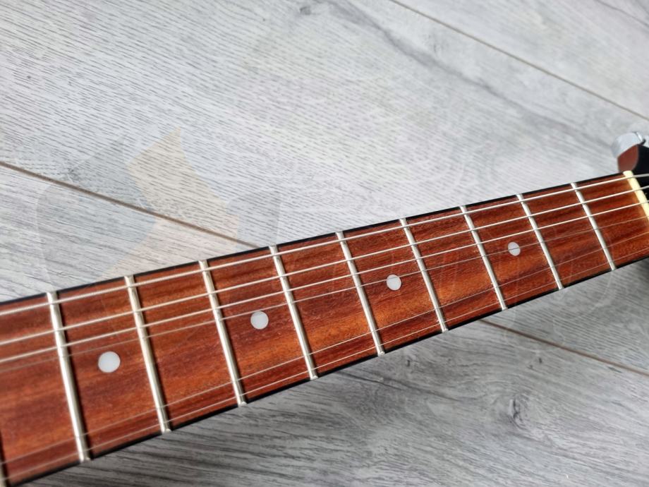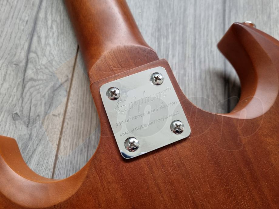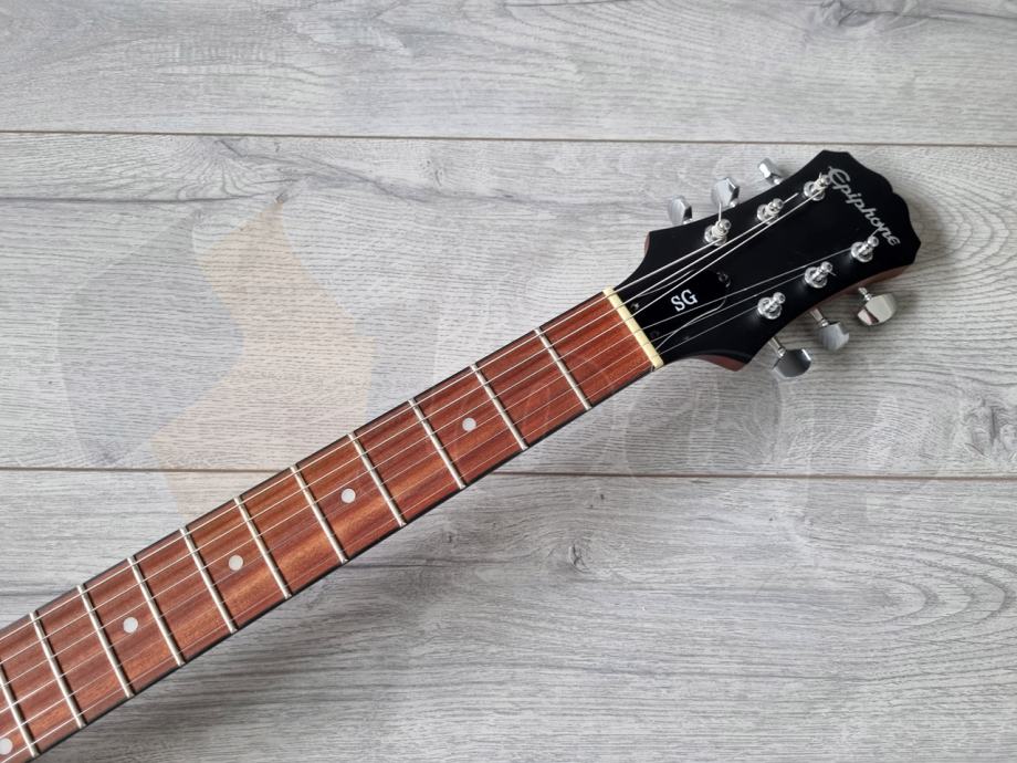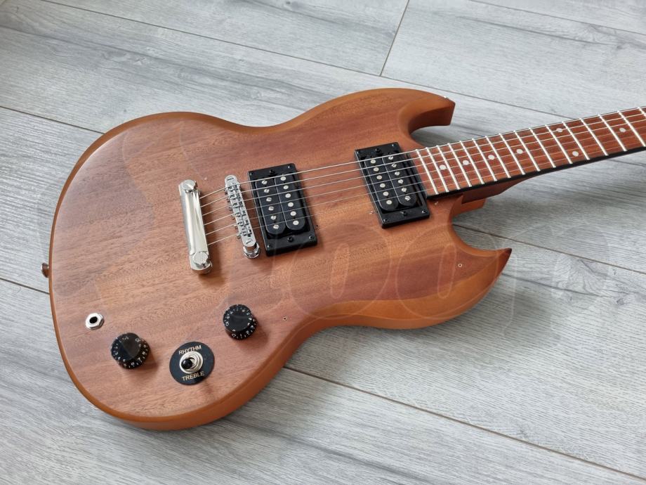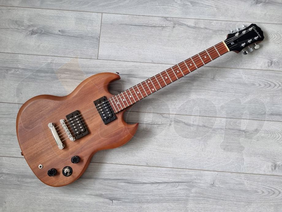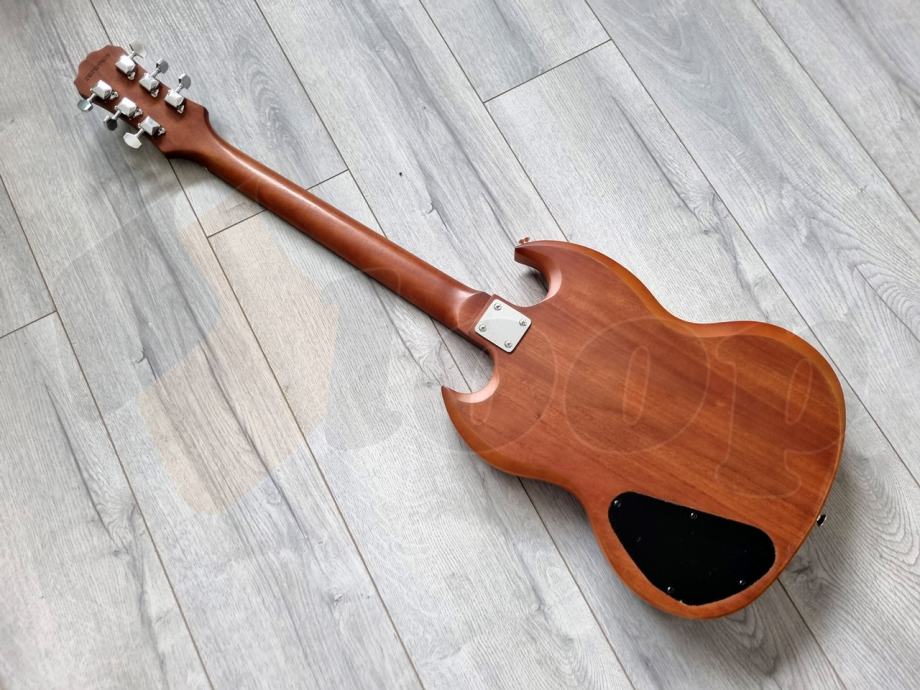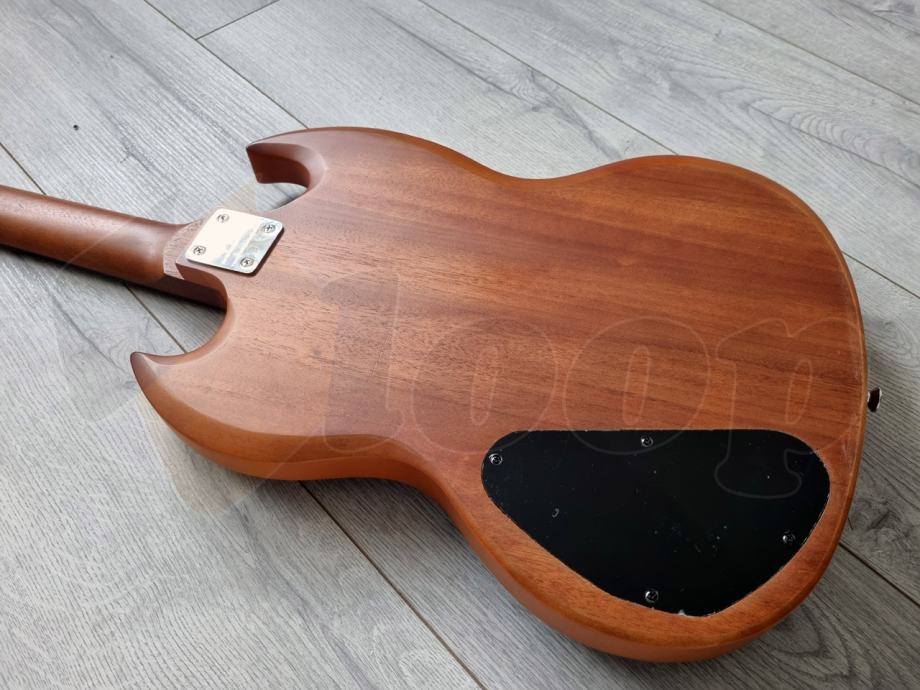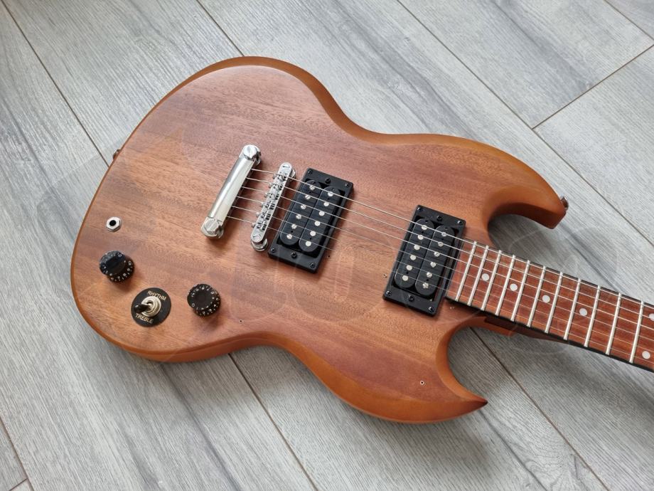 odlično očuvana električna gitara popularnog SG oblika; tijelo od drveta topole, vrat 60's SlimTaper D profila, fingerboard od palisandera, 22 Medium Jumbo praga, 650R Ceramic-8 Bridge i 700T Ceramic-8 humbuckeri...