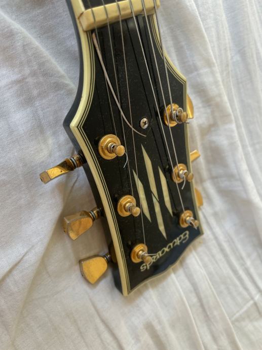 Prodajem gitaru iz naslova. Edwards je podkompanija ESP Japana i radi jedne od boljih kopija Gibson gitara uz Burny, Greco, Orville. Koliko sam upoznat gitara je godiste negdje srednje '90te. Vidljivi su tragovi koristenja, no usprkos tome u odlicnom je stanju. Stavljeni su Gibson 498T i 490R pickupovi uzeti iz Gibson SG Standarda iz 2005. Uz gitaru na poklon ide no name kofer i originalni pickupovi koji su bili u gitari (nekakva replika PAFova). Gitara je puni mahagonij sa ebony fretboardom.