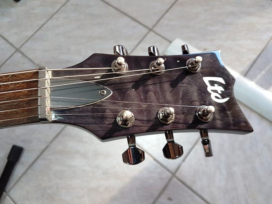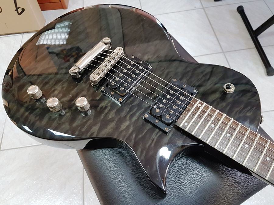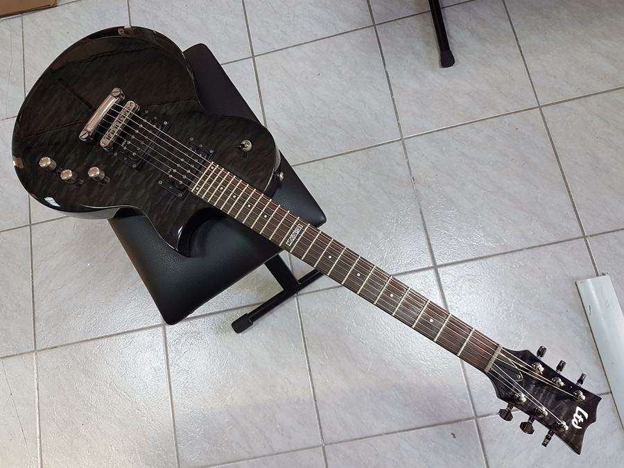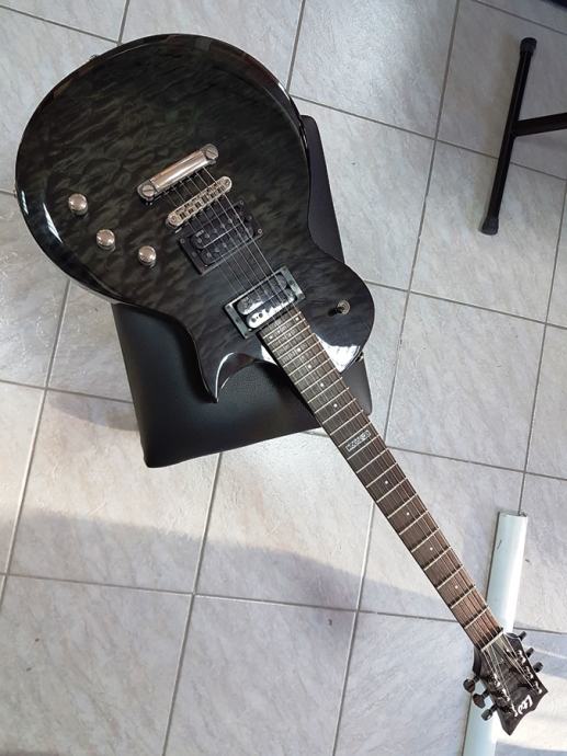 rock mašina s tijelom od lipe, rosewood fingerboard; Thin U neck contour; 24 XJ frets; ESP tuners; Tune-o-matic bridge and stopbar tailpiece; ESP LH-150 bridge and neck humbuckers.