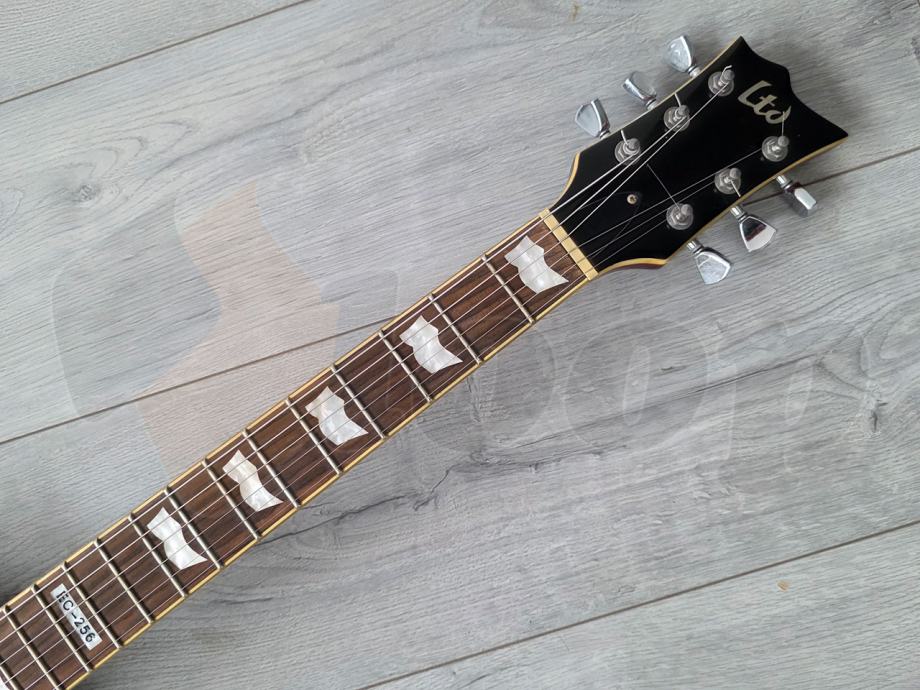 izvrsno očuvana električna gitara ESP LTD EC-256 s dva ESP LH-150 humbuckera, oba sa split funkcijom. Gitara ima jedno sitno oštećenje laka, vidljivo na slikama.