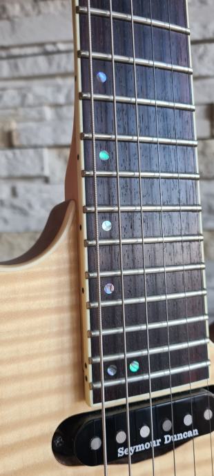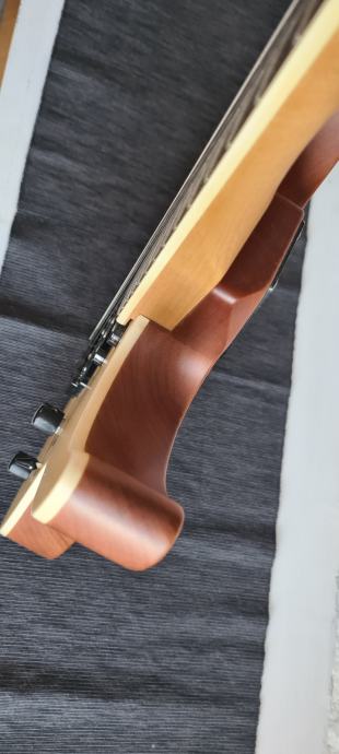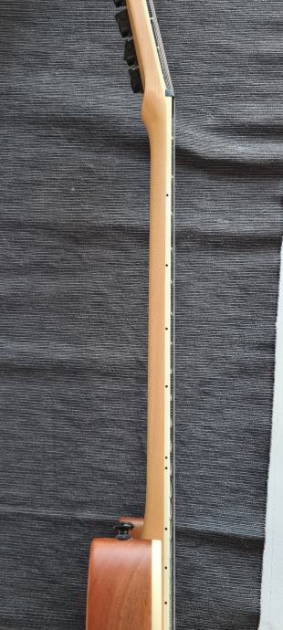 Za ovaj cjenovni rang jako kvalitetna izrada, maple(javor) gornja ploca, a tijelo i vrat od mahagonija. Grover kljucevi. Natural wood saten tijelo i vrat.