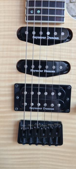 Seymor duncani u neck i srednjoj poziciji i Custom-5 u bridgu zvuce jako dobro, pun i čist zvuk. Gitara ima jako brz, tanak vrat, vrlo je ugodna i lagana za svirati. Lani rađen setup, polirani pragovi, nahranjeno drvo vrata...mažena i pažena.