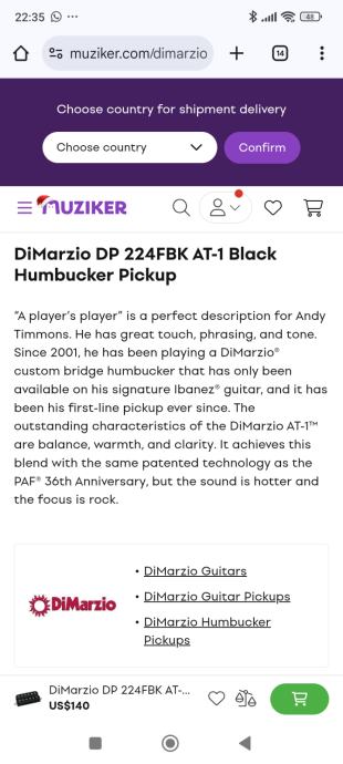 - Dimarzio custom AndyTimmons (at-1) na bridge, izuzetno razgovjetan ali svirljiv, mekan pod rukom (novi kupljen na muziker 140eur, garancija jos traje)