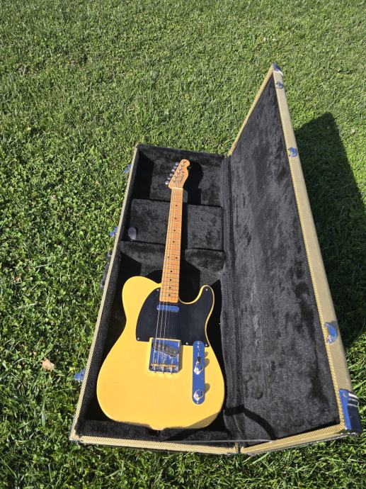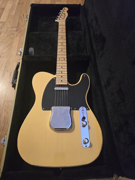 Fender AVRI 52 Telecaster, light relic, setapirana na 10ke i spremna za svirku. Uz gitaru dolazi original metalni poklopac bridgea i odličan Kinsman tweed case.