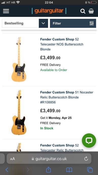 Fantastičan Custom shop Telecaster iz 2014. u apsolutno savrsenom stanju i nov! Savršena gitara sa savršenim izgledom, bozanstvenim zvukom i vrlo lagana (3,16kg). Super boja, dobar medium vrat sa 9,5“ radiusom.
