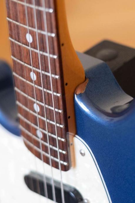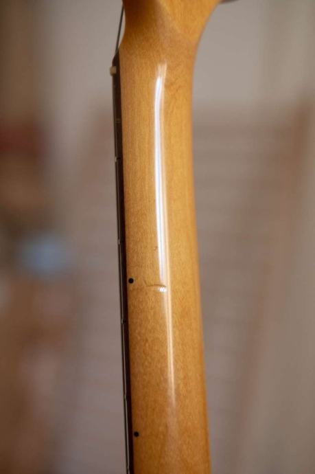 Gitara radi savršeno i tehnički je besprijekorna. Estetski ima vidljivih tragova korištenja te dva oštećenja laka koja sam se potrudio jasno prikazati na fotografijama.