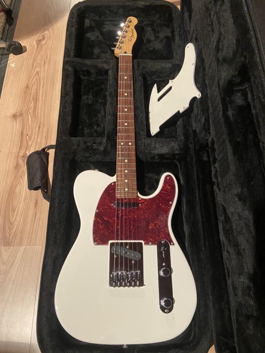 Prodajem Fender Player Telecaster u odličnom stanju. Setupirana, svirljiva i izuzetno očuvana bez crtice jer je svirana samo u studiju. Nova serija MIM 75th anniversary koja ima odličnu elektroniku i pickupe. Upgrade službeni Fender locking tuneri koji odlično drže štim. Dolazi s originalnim bijelim i dodatno kupljenim tortoise pickguardom. Žice su 10-46 Ernie Ball. Moguća je prodaja s potpuno novim tweed koferom. Molim bez zamjena jer prodajem više gitara i skupljam za nešto drugo. Moguće slanje pouzećem ili nakon uplate na račun.