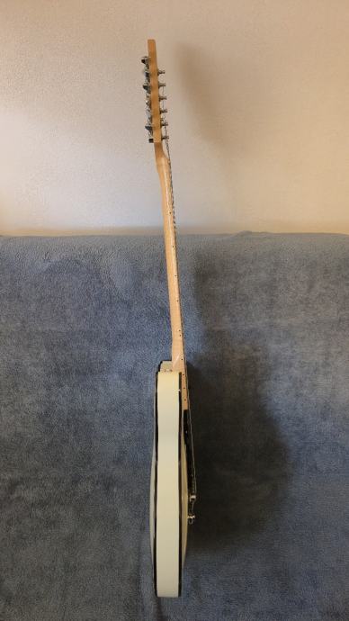 Prodajem Squier Affinity Starcaster u Olympic White boji. Model je iz prve godine proizvodnje (2019.), redni broj 83 u seriji. Gitara je kupljena nova 2022. godine. Na instrumentu nema nikakvih oštećenja, ogrebotina niti tragova na laku. Svi dijelovi su originalni, a pragovi su bez vidljivog trošenja. Izuzetno rijedak model na tržištu, pogotovo u ovakvom stanju i kao jedan od prvih stotinjak primjeraka ikada proizvedenih u seriji. Gitara je tehnički i estetski u odličnom stanju.