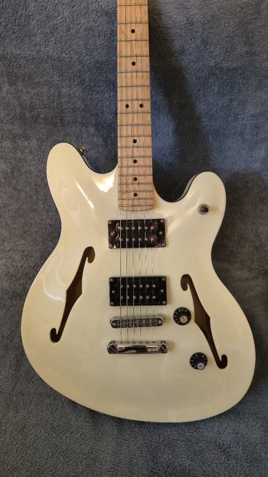 Prodajem Squier Affinity Starcaster u Olympic White boji. Model je iz prve godine proizvodnje (2019.), redni broj 83 u seriji. Gitara je kupljena nova 2022. godine. Na instrumentu nema nikakvih oštećenja, ogrebotina niti tragova na laku. Svi dijelovi su originalni, a pragovi su bez vidljivog trošenja. Izuzetno rijedak model na tržištu, pogotovo u ovakvom stanju i kao jedan od prvih stotinjak primjeraka ikada proizvedenih u seriji. Gitara je tehnički i estetski u odličnom stanju.