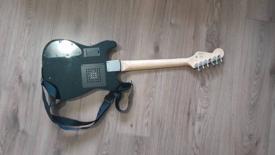 Ima malu pukotinu na poklopcu gdje se stavlja baterija jer je baterija bila malo prevelika, ali ništa ozbiljno, gitara potpuno ispravna, malo korištena.