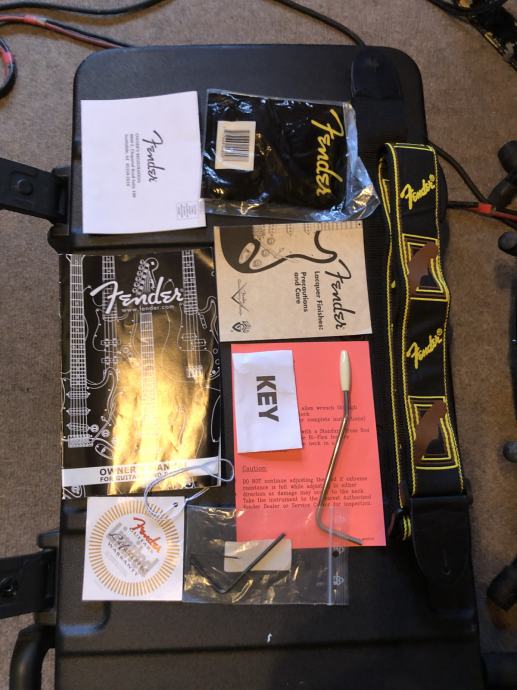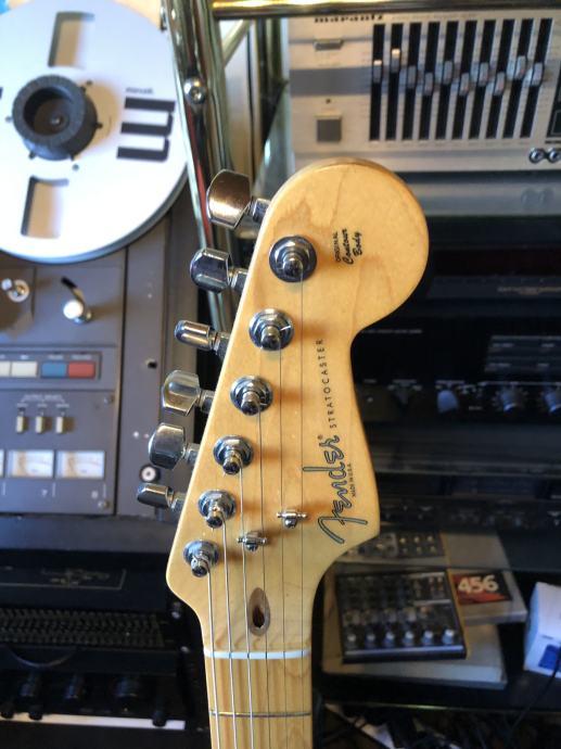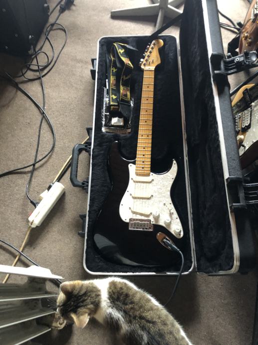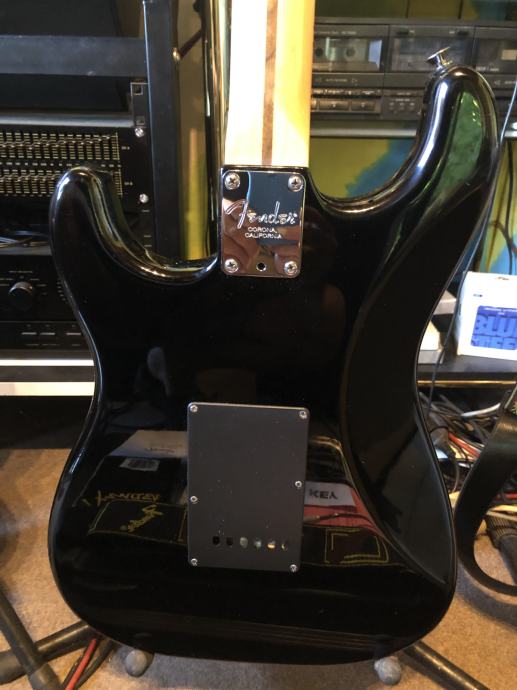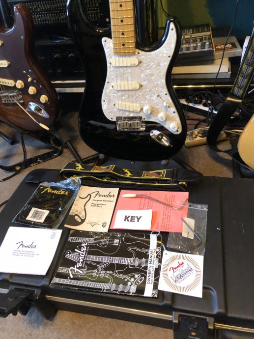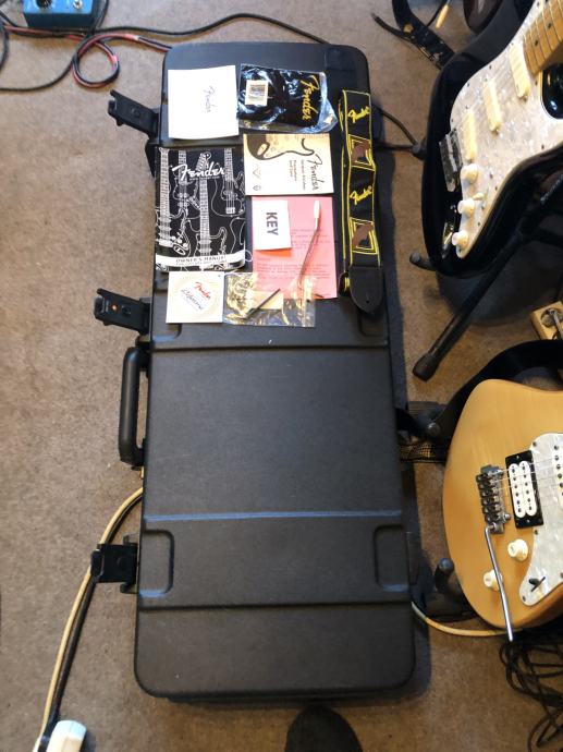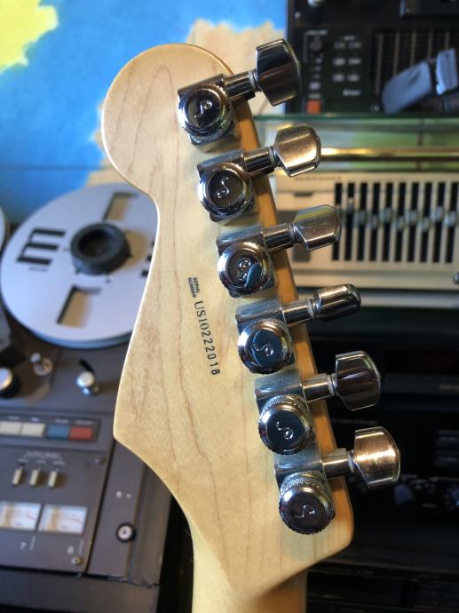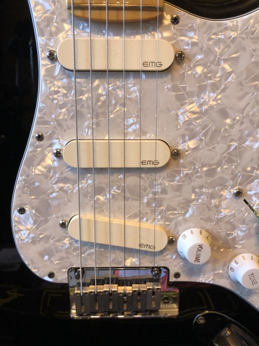 Odlična Fender Standard Stratocaster, 2010.g., izuzetno malo korištena, jako rezonantna, kao nova, što se posebno vidi sa stražnje strane gitare (slika 5.), bez risova, upgrade sa boljim EMG pickovima, i Shaller locking tuners , dolazi sa koferom Molded SKB, novim remenom, kompletnom dokumentacijom, tremolo ručicom, imbusima, pa čak i ključevima za kofer !! Pragovi na 100%, setapirana kompletno !! Stanje gotovo kao iz trgovine !!