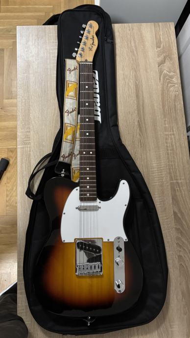 Dolazi sa straplockovima i Fender remenom, torbom, kapodasterom i Thomann clip-on tunerom, te par trzalica.