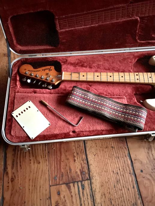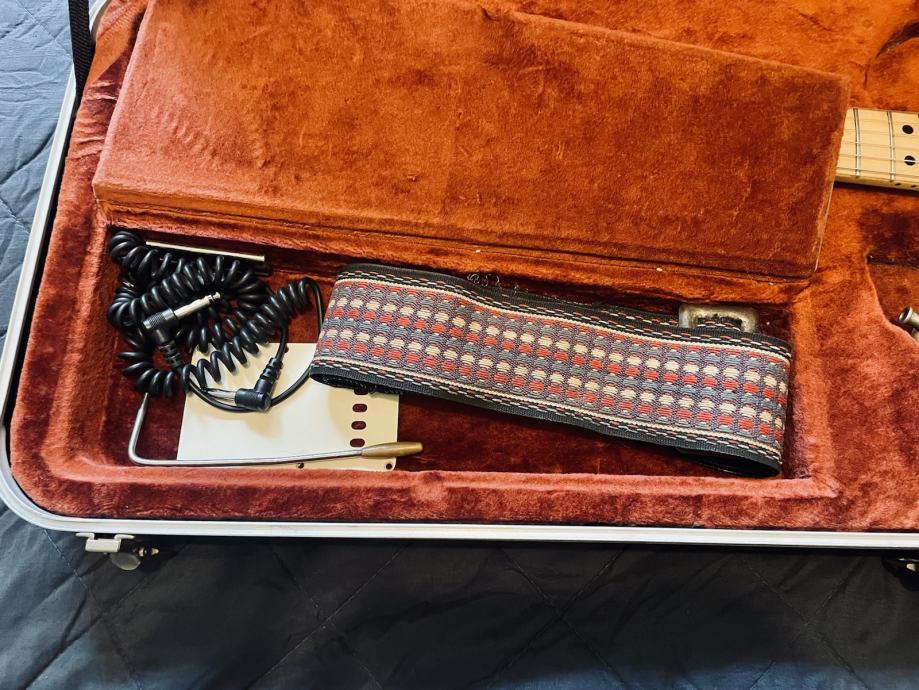 Dolazi sa novijim Fender koferom i prilažem backplate, tremolo arm i remen koji je došao sa gitarom 1972. kad je kupljena.