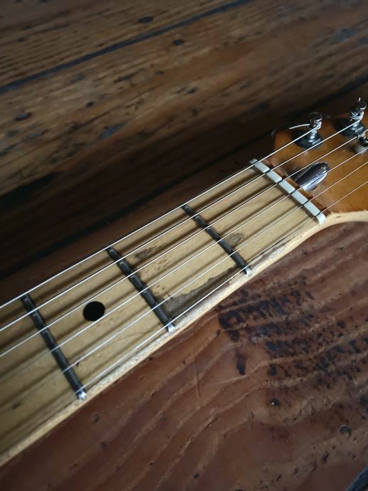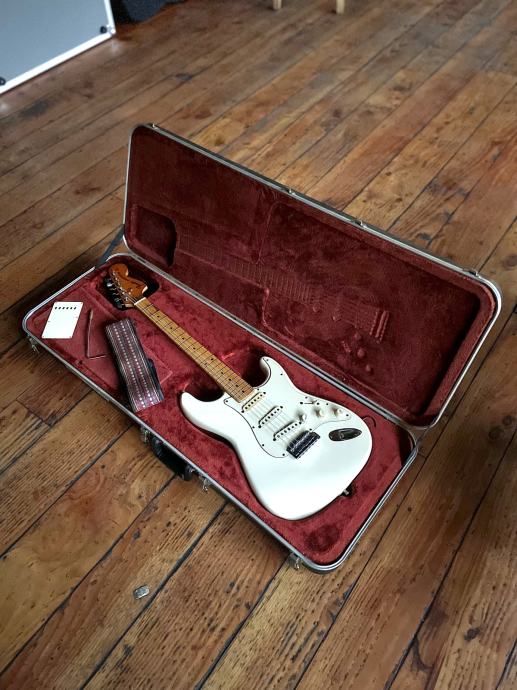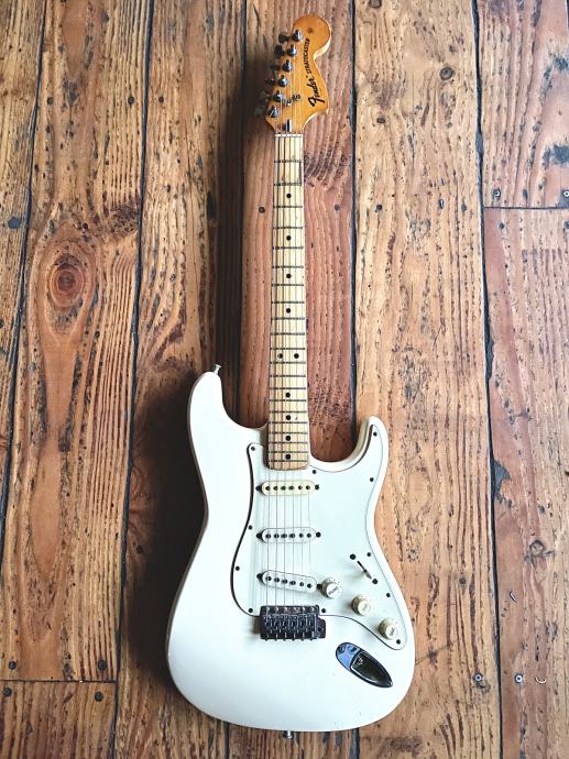 Prodajem Fender Stratocaster iz 1972. godine. Tijelo je prelakirano u Nizozemskoj u Olympic White boju sa nitro lakom, ista boja je bila i original. Također su na gitari promijenjeni potovi, tuneri i stavljen 5 way switch u istom razdoblju, sve sa Fender Strata iz početka 80ih. Ostalo je originalno i gitara svira i zvuči nevjerojatno.