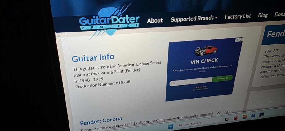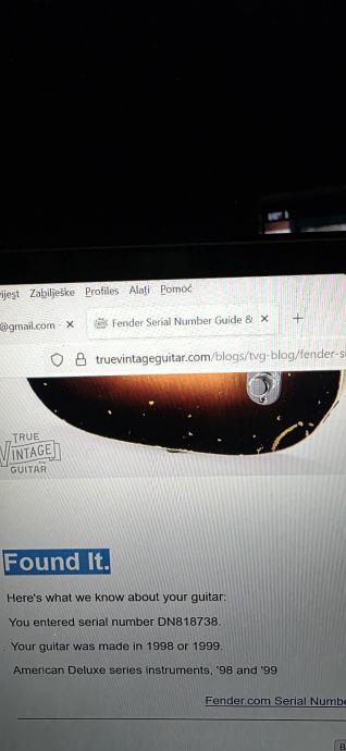 Prodajem Fender Stratocaster American Deluxe iz 1998/1999 godine. Stanje perfektno, jedino su stavljeni novi pragovi kod Catsa. Gitara je kupljena u Njemačkoj, drugi sam vlasnik zadnjih desetak godina, nije nikad bila na gažama i sl. Cijena 2.000 eura za keš, u zamjenama 2.200 eura.Moguća zamjena za fender USA telecaster s maple vratom, deluxe ili American 52 Ri i sl. Slobodno možete doći probati gitaru bez obzira na kupnju.