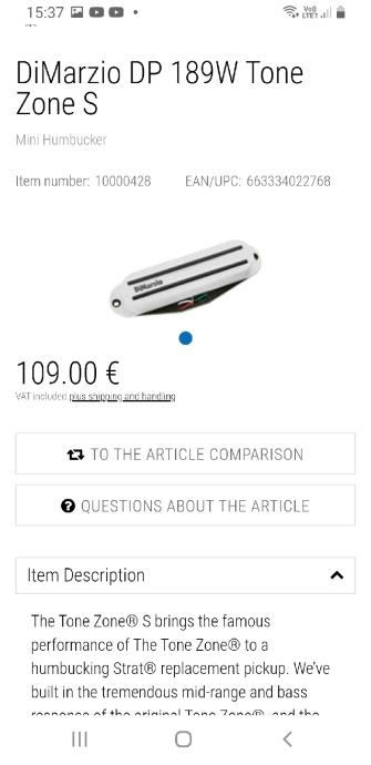Dimarzio 189W Tone Zone bridge pikap ...malo koristen ...stanje ko novo....snizena cijena